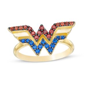 Garnet and Blue Sapphire Symbol Ring in Sterling Silver and 10K Gold :Garnet and Blue Sapphire Symbol Ring in Sterling Silver and 10K Gold